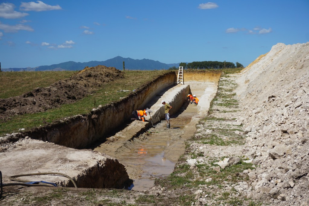 The article is based on analyses of two trenches excavated across the fault in February 2022 (see photos). The purpose of the work was to examine the possible size and frequency of earthquakes on the fault, which would potentially have had an impact on the lakes and associated liquefied lacustrine tephras we are investigating in the adjacent Hamilton lowlands.