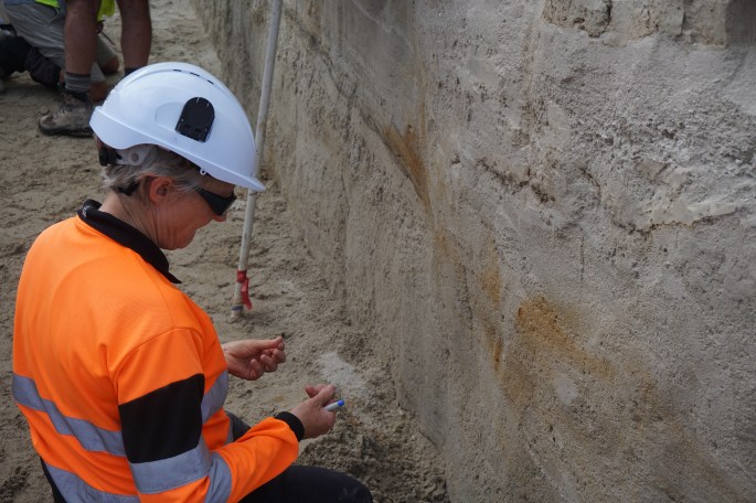 The excavations and field analyses of the deposits in the freshly exposed trench walls (see photos) were supervised by Dr Genevieve Coffey of GNS Science with support from GNS colleagues and also some geoscience staff from University of Auckland and University of Canterbury as well as University of Waikato.
