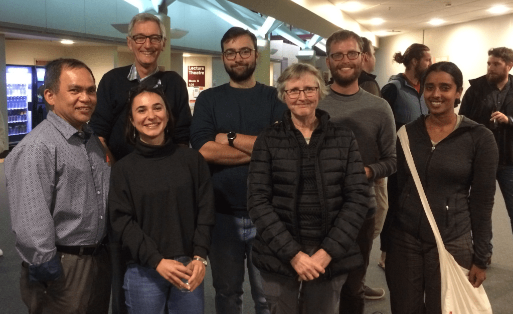 Some of the Tephra Seismites team (left to right). Back: David Lowe, Richard Melchert, Max Kluger; Front: Rolly Orense, Danche Chaneva, Vicki Moon, Tehnuka Ilanko. (Team members unable to be present include Pilar Villamor, Rich Johnston, Josh Hughes, Wiremu Puke).